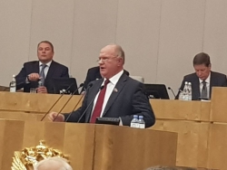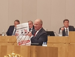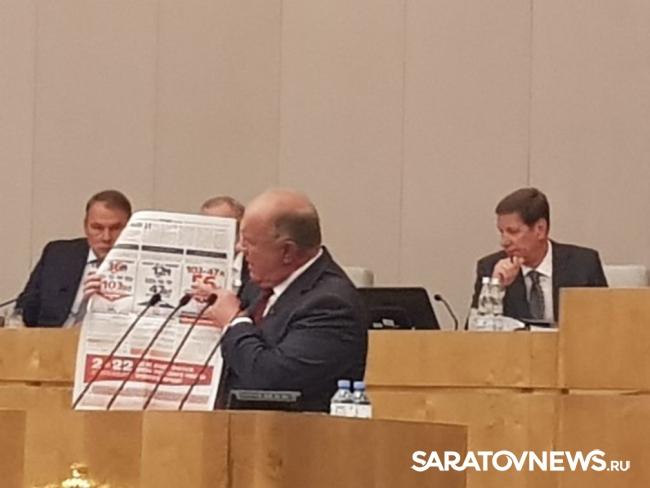 «Вышел Зюганов. Голос простуженный. Возможно, что-то пил ночью холодное. Говорит, победу отмечали коммунистов. Рассказал о том, как учился с генсеком Вьетнама. Может и молодость вспоминали с ним. Зюганов отметил строгость президента при проведении Госсовета, спрашивая с чиновников. Как всегда, жаловался, не все секунды дали ему после выборов. Зачем-то достал газету. Может, у него там доклад написали, и он читал. Ну сами разберутся, думаю», - пишет Николай Панков.