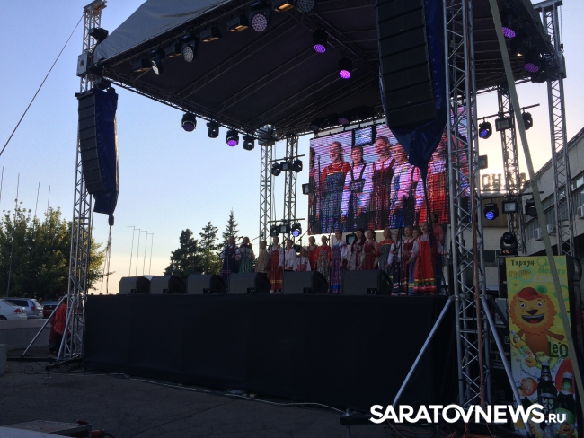 На начавшемся концерте выступают лучшие коллективы Саратовской области. Они исполняют народные песни.