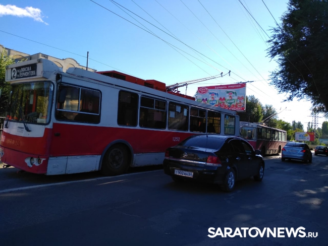 В Саратове встали троллейбусы 16-го маршрута. Очевидцы сообщают, что обесточка застигла несколько машин на улице Астраханской в районе мазагина "Магистраль". На фото видно, что водители транспортных средств покинули свои кабины.