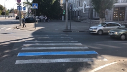 Как отметили в ГИБДД, в синий была покрашена разметка в районе Театральной площади, на Университетской, 57 и на Московской, 159.