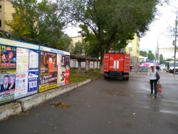 Сейчас огонь локализован на первом этаже общежития. Рядом дежурит пожарная машина МЧС. Возможно, пожарные ждут "полного выгорания" объекта изнутри.