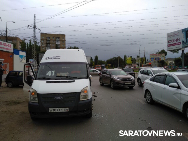 Только что в Ленинском районе Саратова на «кольце» троллейбуса 10-го маршрута столкнулись КамАЗ "Саратовоблжилстрой" с прицепом и пассажирская ГАЗель №41. Как передают очевидцы с места событий, у ГАЗели разбиты стекла, зеркало заднего вида. Со слов водителя маршрутки, КамАЗ въехал в него. По его словам, на этом месте постоянно происходят дорожно-транспортные происшествия. Из –за аварии движение транспорта блокировано в обе стороны. Сейчас участники ДТП ожидают прибытия сотрудников ГИБДД.