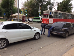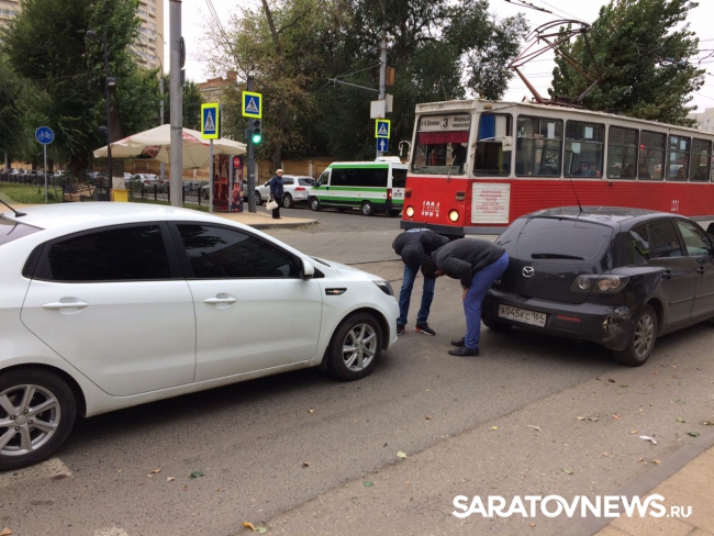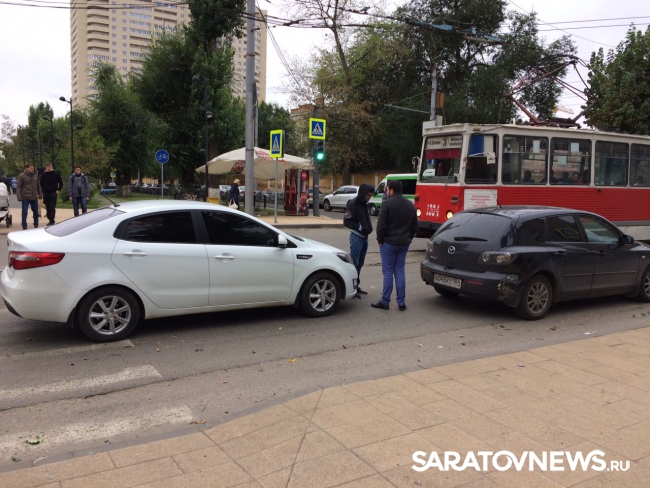В Октябрьском районе Саратова на пересечении улиц Рахова и Советской столкнулись две иномарки «Киа» и «Мазда». Дорожно-транспортное происшествие парализовало сразу две улицы.