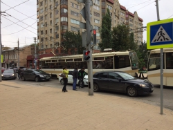 Как передают очевидцы с места событий, в пробке встал весь общественный транспорт - трамваи, троллейбусы, маршрутные такси. Участники аварии ожидают прибытия дорожной полиции.