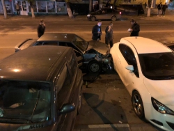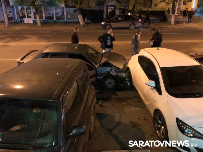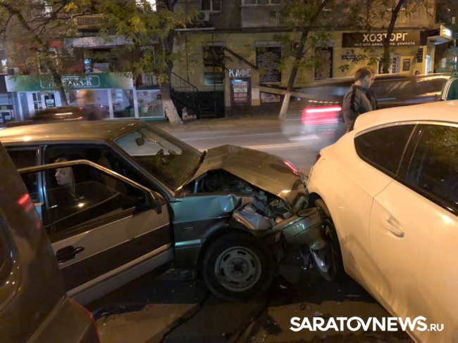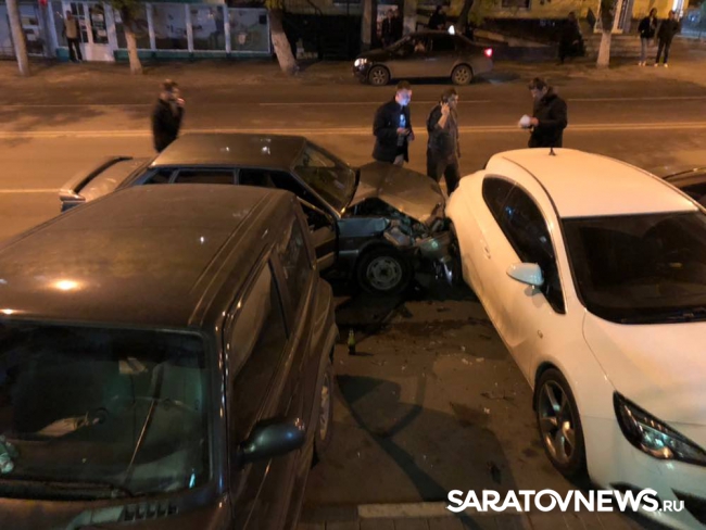 В Саратове водитель "пятнадцатой" протаранил три припаркованные машины.