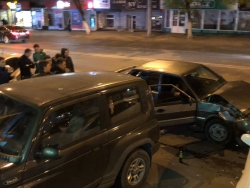 Авария произошла на Чапаева, между Ульяновской и Рабочей. Водитель "пятнадцатой" протаранил "Опель", "Ладу" и "Тайгер", припаркованные у "Сбербанка". От удара "Тайгер" протаранил фасад банка.