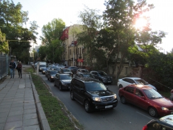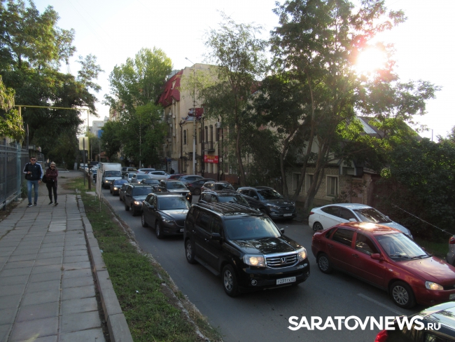 В Волжском районе Саратова перекрыт для движения участок улицы Мичурина от Соборной до Радищева. Поток транспорта, направляющийся в сторону Заводского района, вынужден сворачивать по Соборной на улицу Чернышевского. Пробка на Мичурина начинается от Московской.