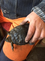 На мусороперегрузочной станции в поселке Елшанка была найдена живая черепаха. На загрузочной линии в общем потоке ТКО оператор заметил животное.