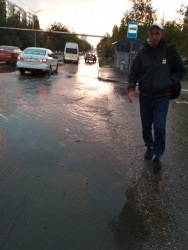 Потоки воды создают проблемы для пешеходов и автомобилистов.