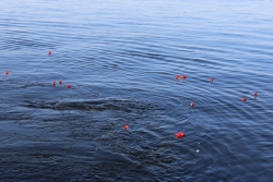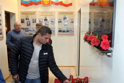 После этого все присутствующие возложили цветы к мемориальной доске, установленной в гараже части. И поехали к месту падения пожарного автомобиля, где, по традиции, возложили венок на воду.