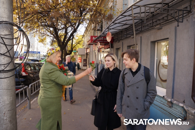 Надежда Аврорская, директор Цветочной базы №1: «Мы обратили внимание на то, насколько грустны лица саратовцев, спешащих с работы домой. Решили попробовать изменить это и … увидели море искренних улыбок, даже восторг».