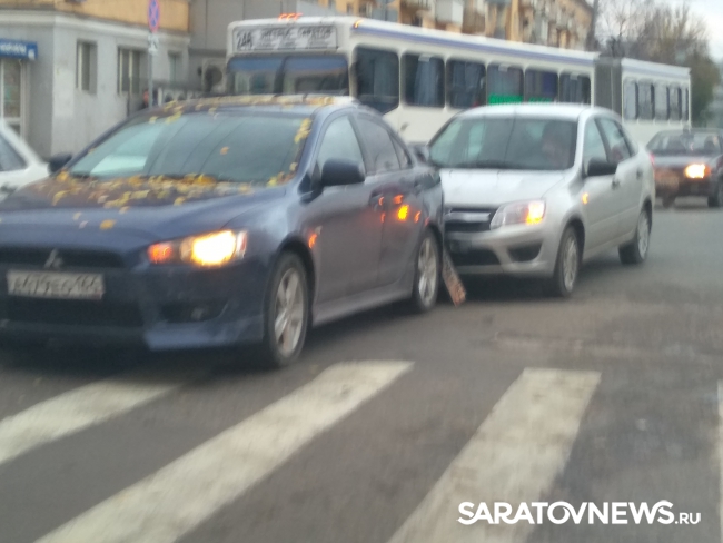В Кировском районе Саратова на пересечении улиц Аткарской и Московской произошло ДТП с участием двух легковых машин. Как передает наш корреспондент, прямо на пешеходном переходе столкнулись «Мицубиси Лансер» и отечественная «Лада». Движение транспорта в сторону улицы Кутякова затруднено. Участники аварии дожидаются приезда сотрудников ГИБДД.