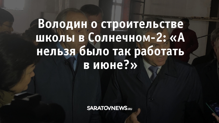 Председатель Госдумы РФ Вячеслав Володин во время рабочей поездки в Саратовской области побывал на стройплощадке школы на 1100 мест в Солнечном-2, которую строят на федеральные средства. Напомним, она должна быть сдана до конца года.