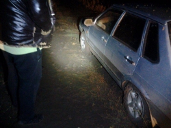 С помощью УАЗа "девятку" отбуксировали до трассы. От другой помощи пассажиры отказались.