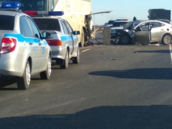 Как передает наш корреспондент с места события, сейчас на месте происшествия работают сотрудники дорожной полиции. Дорога из-за аварии практически перекрыта. Автомобилисты объезжают ее по обочине. Движение затруднено.