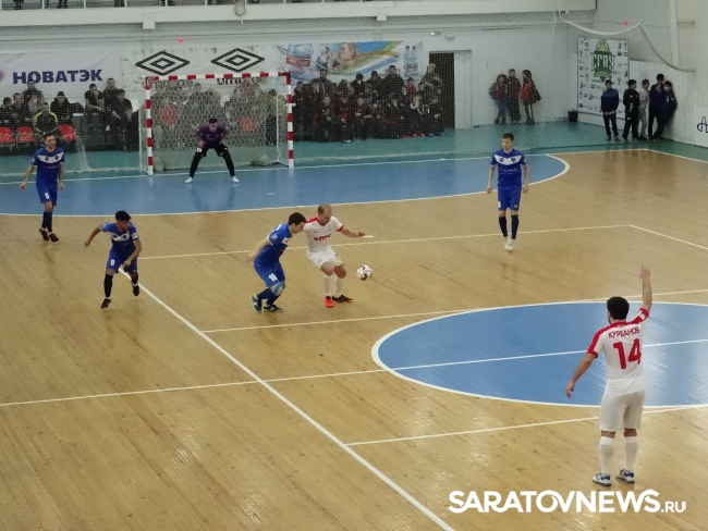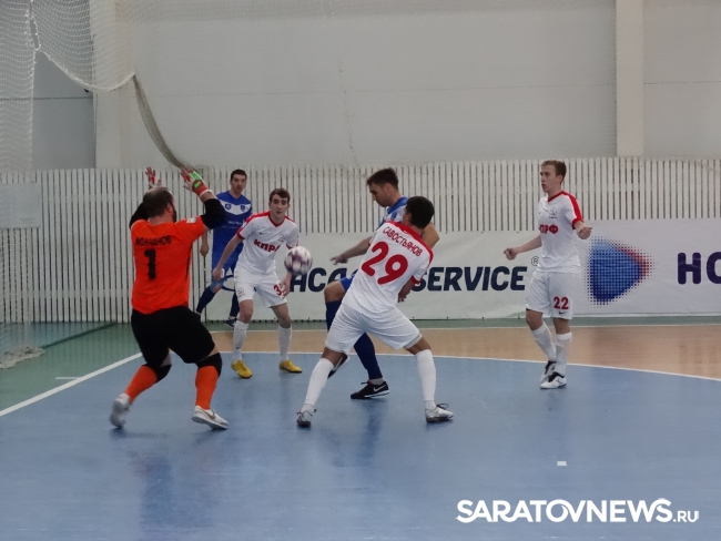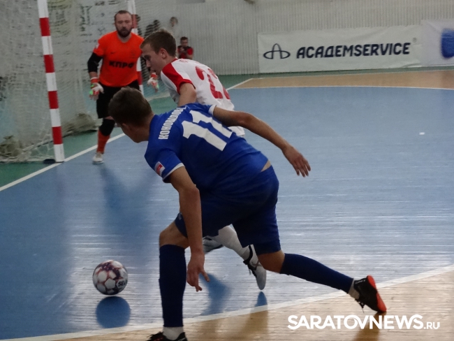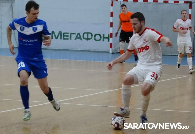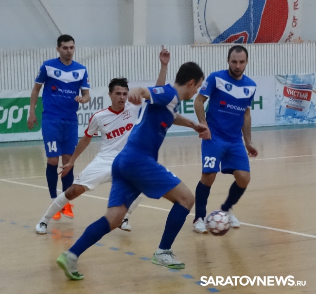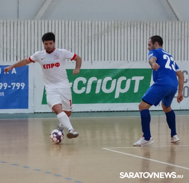 Мини-футбольная «Волга-Саратов» на своей площадке дала бой столичному КПРФ-2. Двукратный чемпион Высшей лиги сразу прижал хозяев к воротам и забил два быстрых гола: на второй минуте отличился Олег Безруков, на третьей - Олег Кручинин. К исходу первой десятиминутки игра выровнялась, и после штрафного Роман Сенаторов сократил отставание.
