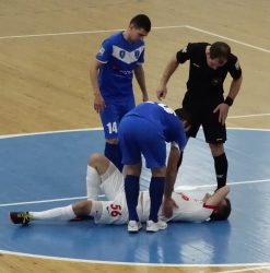 Три минуты спустя Максим Коновалов после очередного штрафного сравнял счет, и первый тайм закончился вничью 2:2.