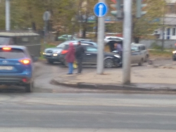 ВАЗ 2110 и "Мерседес" столкнулись недалеко от стелы "Ленинский район", на дороге, которая примыкает к проспекту 50 лет Октября по нечетной стороне. Машины после инцидента полностью заблокировали дорогу.