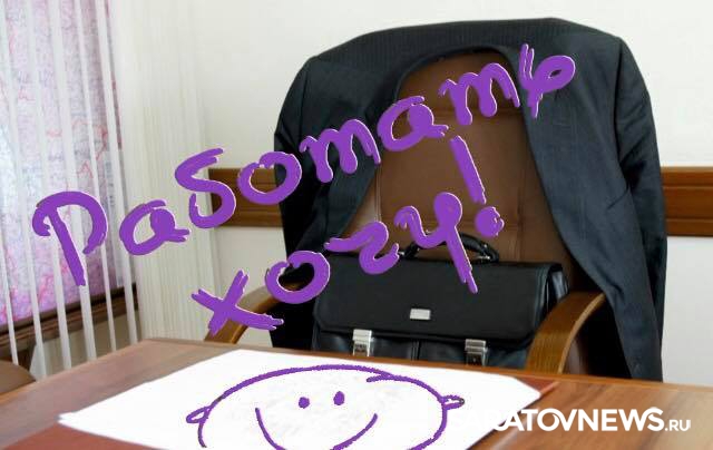 Иллюстрацией к записи стала стоковая картинка, изображающая кресло с накинутым пиджаком и портфелем, на которой написано "Работать хочу!".