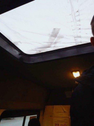 Жители Саратова возмущаются маршруткой, которую кое-как привели в работоспособный вид и выпустили на улицы города. У микроавтобуса, который ездит по маршруту № 42, верхний люк закрыт куском полиэтилена и заклеен скотчем, а дверь закрывается при помощи веревки вместо электропривода. Маршрут № 42 обслуживает МУПП «Саратовгорэлектротранс».
