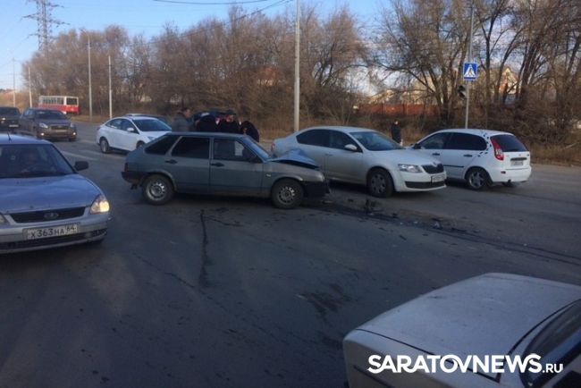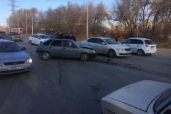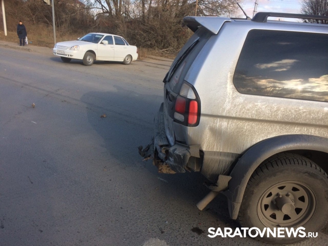 Примерно 50 минут назад в Саратове, на перекрестке 1-го проезда Танкистов и Черниговской ВАЗ 2109 влетел в зад внедорожника "Мицубиси". Обе машины спускались к Молочке со стороны Солнечного и, вероятно, водитель "Лады" не успел затормозить перед светофором, на котором остановился "Мицубиси".