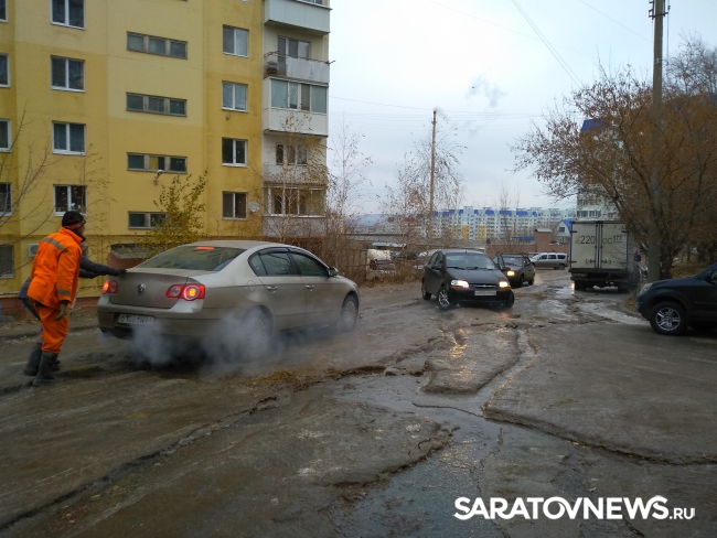 Сегодня утром не все саратовцы смогли проехать к церквям на улице Днепропертовской в поселке Солнечный. На ставшую непроезжей дорогу Saratovnews пожаловались очевидцы.