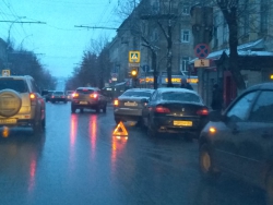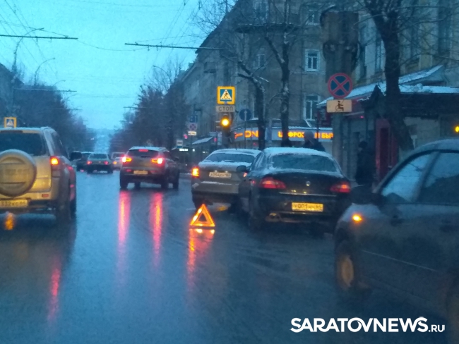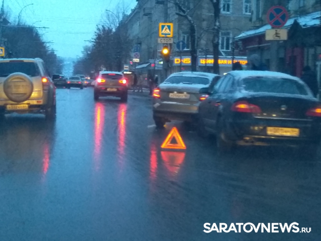 В центре Саратова из-за двух столкнувшихся иномарок образовалась пробка.