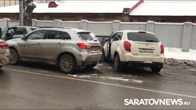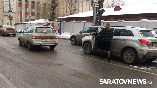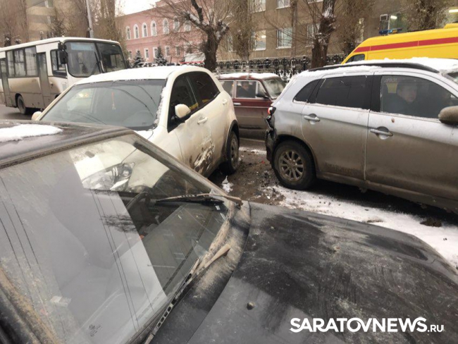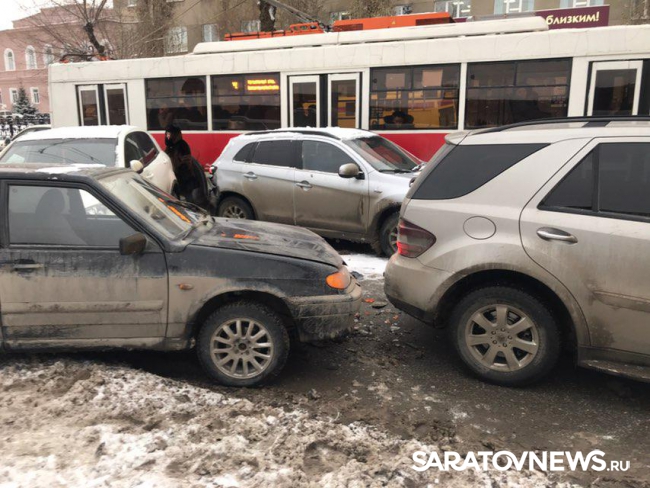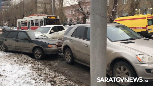В центре Саратова произошла массовая авария с участием четырех машин. Об этом сообщили в Областной службе спасения.