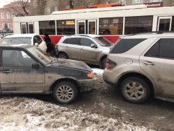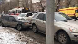 По предварительным данным, у больницы №2, расположенной на улице Чернышевского, неподалеку от пересечения с Провиантской, столкнулись "Мерседес", "Мицубиси", "Ссанг Йонг" и "четырнадцатая".