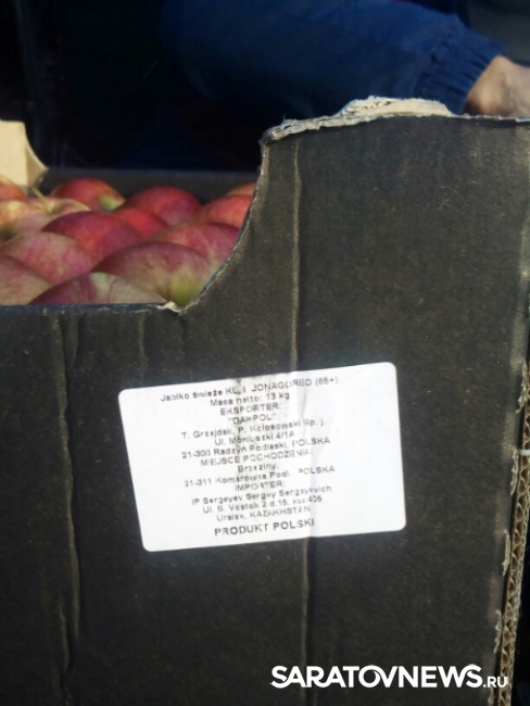 На коробках с яблоками обнаружили этикетки, судя по которым, их вырастили в Польше.