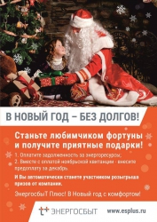 Акция "В Новый год – без долгов!" проводится во всех регионах присутствия компании. В Саратовском филиале она состоится уже в третий раз. Главная ее задача - поощрить тех клиентов, которые своевременно оплачивают счета за тепло и горячую воду. Попасть в число участников могут все физические лица-потребители, оплачивающие услуги напрямую "ЭнергосбыТ Плюс".