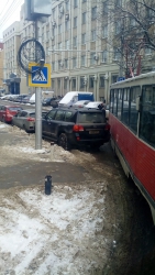 "Редко это делаю, но сегодня это перешло границу дозволенной наглости. Владелец данного авто решил, что ему все дозволено. Оставив машину под мало того, что пешеходным знаком, но и возле трамвайных путей. Все движение парализовано по 3 улицам. Господа будьте умнее и не делайте так. Гос. номер к888то", - сообщил очевидец.