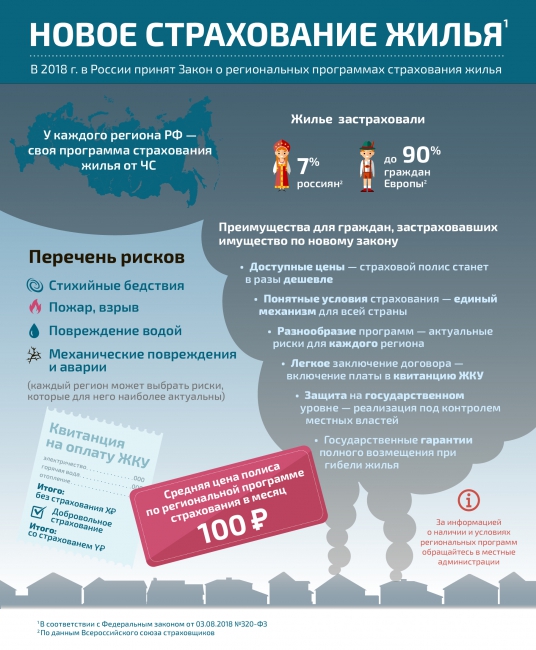 Оплата страховки станет гораздо удобнее, - во-первых, благодаря созданию общероссийской информационной системы по страхованию жилья, через которую можно будет оплатить полис и получить выплату при страховом случае; во-вторых - из-за включения опции добровольного страхования в квитанцию за жилищно-коммунальные услуги.