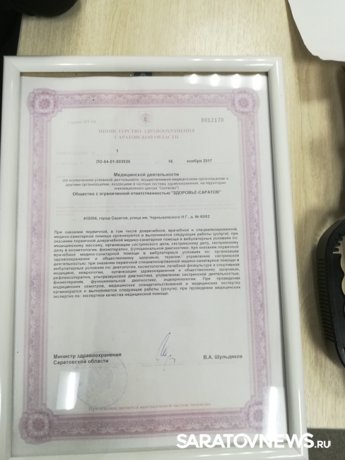 Общественники пришли в "Здоровье-Саратов" вместе с одним из несостоявшихся клиентов, который захотел расторгнуть договор с банком. По словам 62-летнего мужчины, ему позвонили и предложили пройти бесплатное обследование. Придя по приглашению 4 декабря, он сдал кровь и прошел процедуры, которые, по словам сотрудников клиники, выявили, что у него имеются серьезные проблемы со спиной. При этом никакого документа с диагнозом ему на руки не выдали.