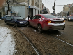 Примерно с 16:00 в Саратове прервано движение четырех трамвайных маршрутов. Об этом сообщил администратор группы "Троллейбусы и трамваи Саратова". Проблемы возникли из-за аварии на пересечении улицы Советской и Мирного переулка. Здесь лоб в лоб столкнулись "Мазда", которая поворачивала с Советской в переулок, и выезжавшая из него другая иномарка.