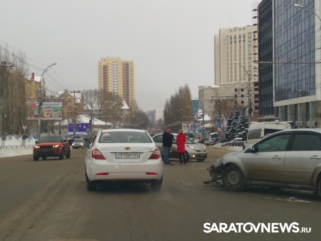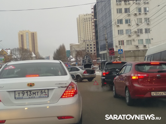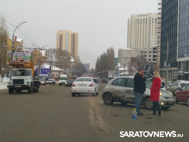 После удара машины разбросало по проезжей части так, что они практически полностью перекрыли дорогу в центр Саратова. Водители вынуждены объезжать место происшествия через встречные полосы, пересекая двойную сплошную линию разметки. Движение рядом с местом аварии затруднено в обе стороны.