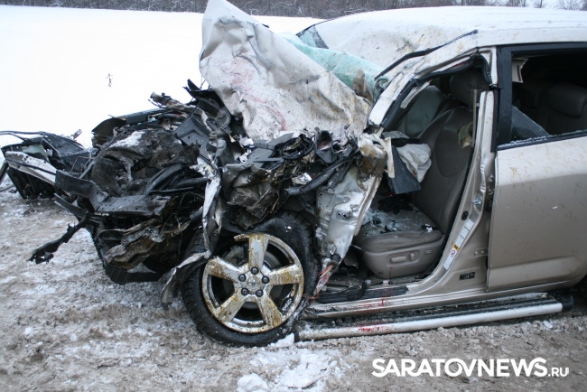 Сегодня рано утром в Энгельсском районе на ершовской трассе лоб в лоб столкнулись Toyota Rav 4 и грузовая "Газель". По данным регионального ГУ МЧС, инцидент произошел в 03:40. В аварии водитель Toyota погиб, шофер "Газели" в больнице.