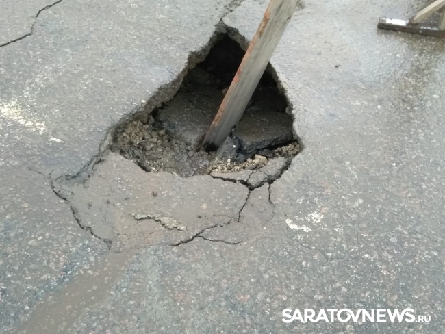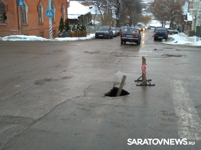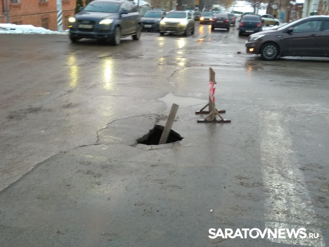 В редакцию Saratovnews обратились обеспокоенные жители Саратова, которые сообщили об огромной яме на проезжей части в самом центре города.