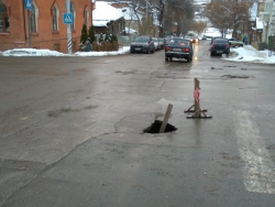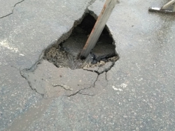 Примечательно, что вокруг провала уже образовались трещины. Вероятно, если ему не уделят должного внимания, он в скором времени может провалиться еще сильнее.