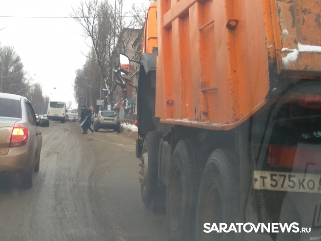 В Кировском районе Саратова на пересечении улицы Танкистов и Безымянного проезда сломался груженный снегом КамАЗ, задействованный в работах по расчистке города от снега и льда.
