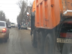Как передает наш корреспондент, грузовик занял всю проезжую часть и создал существенную пробку. Водитель КамАЗа собственными силами пытается справиться с неполадками. Движение в сторону улицы Навашина сейчас затруднено.