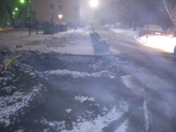 По словам местных жителей, глубокую яму с периодичностью два раза в месяц то раскапывают, то засыпают. Сейчас уже несколько дней она стоит открытой и ничем не огороженной. В нескольких метрах от нее находится подстанция «Скорой помощи». Неотложки и днем и ночью проезжают мимо ямы по одной стороне дороги. Тут же стоит дорожный знак, указывающий, что обгон на данном участке запрещен.