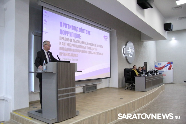 12 декабря 2018 года в Научно-информационном центре СГТУ имени Гагарина состоялось заключительное пленарное заседание всероссийской научно-практической конференции "Противодействие коррупции: правовое обеспечение, основные аспекты и антикоррупционные стандарты поведения в научных и образовательных организациях". Мероприятие было приурочено ко Всемирному дню борьбы с коррупцией и юбилею закона о противодействии коррупции.