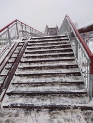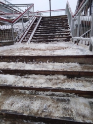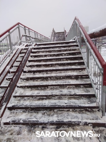 Сегодня в одном из саратовских анонимных Телеграм-каналов появилась фотография неубраного надземного перехода у остановки Саратов-2. Автор поста опубликовал его сегодня утром.