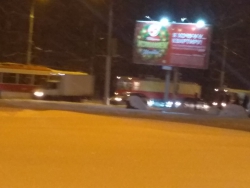Горожане, с трудом добиравшиеся на работу, прислали в редакцию снимки того, как друг за другом стоят четыре троллейбуса. На фото видно, как первый из них включил аварийку. А бригада специалистов устраняет неполадки.