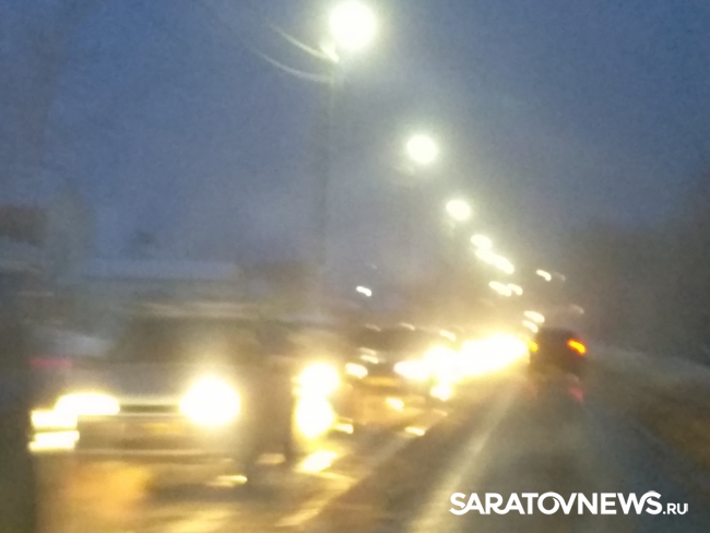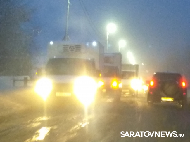 Из-за сильного снегопада и потепления, о которых вчера предупреждали спасатели, на дорогах Саратова утром были пробки в 10 баллов. Погода не улучшилась и сейчас: на город опустился сильный туман.