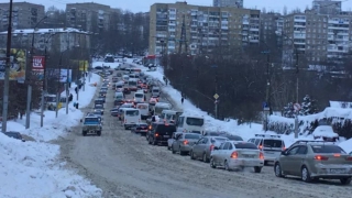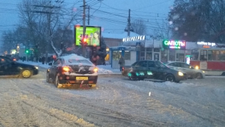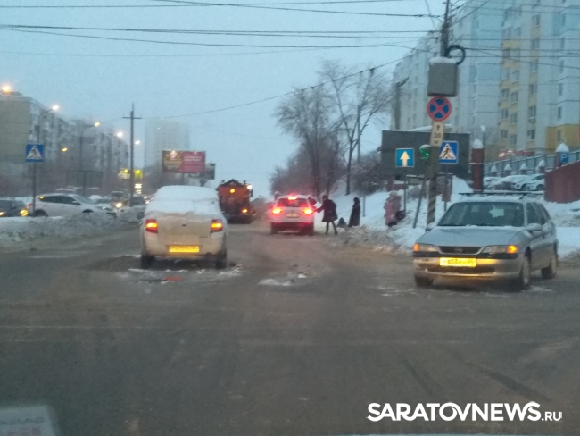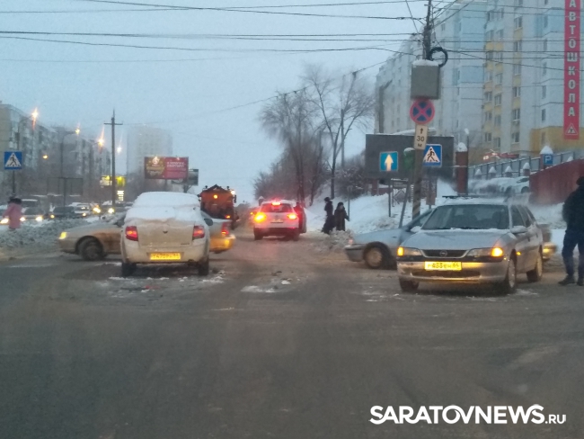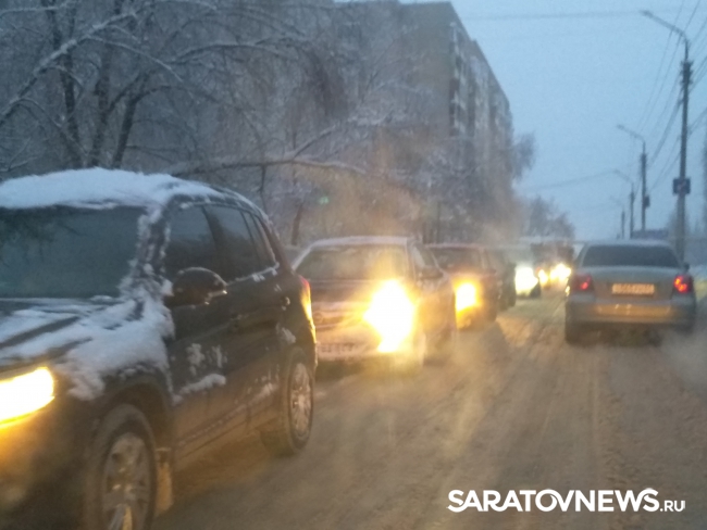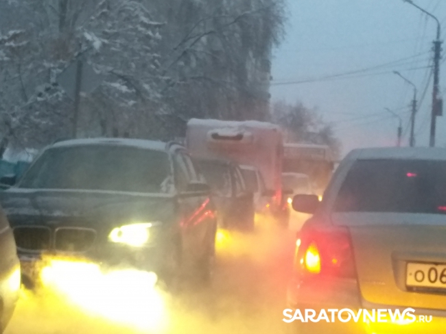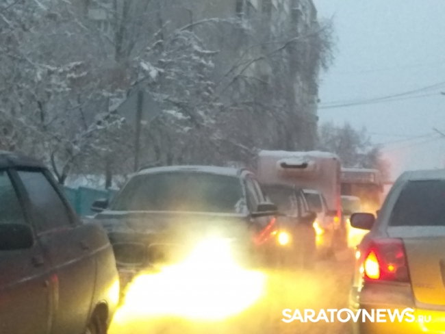 В Саратове сегодня пробки в девять баллов из-за скользких дорог и множества мелких столкновений.
