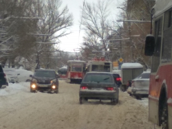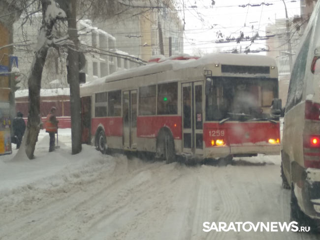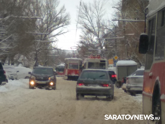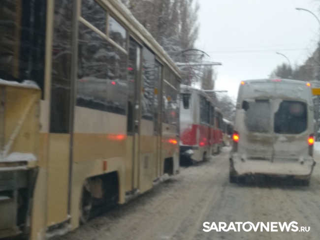 Сегодня утром в Саратове были десятибалльные пробки. Не ходили трамваи почти всех городских маршрутов. В районах области на дорогах машины застревали в снегу. Трасса Саратов - Волгоград закрыта для большегрузов, на других крупных дорогах региона тоже есть заторы.