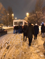 На остановке "Техстекло" люди выталкивали застрявший троллейбус.
