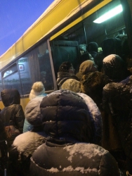 В социальных сетях Саратова горожане публикуют фотографии, сделанные сегодня утром во время штурма автобусов на остановках общественного транспорта. Четвертый день люди не могут нормально добраться до работы из-за выпавшего снега. На одном из снимков видно, как пассажиры вытлкивают застрявшей в снегу микроавтобус. Среди добровольцев видна девушка. Люди обсуждают транспортный коллапс в соцсетях.